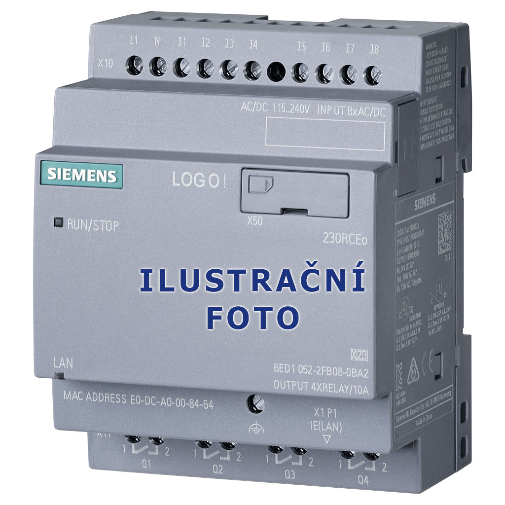 Řídicí (logický) PLC Siemens LOGO! 9 230 RCEo (6ED1052-2FB08-0BA3) je univerzální PLC jednotka určená pro napájení 230 V AC. Na rozdíl od varianty s displejem je tato verze bez displeje a nabízí 8 digitálních vstupů a 4 relé výstupy.