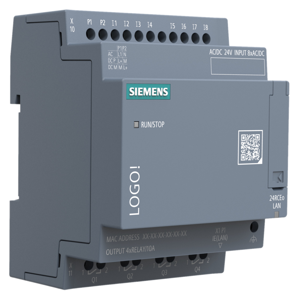 Všestranný PLC modul s napájením 24 V AC/DC, 8 digitálními vstupy a 4 reléové výstupy. Se Siemens LOGO! 9 24 RCEo (6ED1052-2HB08-0BA3) můžete například ovládat osvětlení, motory nebo topné systémy a mnoho dalšího. Modul podporuje rozšíření o další I/O moduly a integraci s webovým serverem i cloudovými službami jako MQTT, Amazon AWS nebo Microsoft Azure.